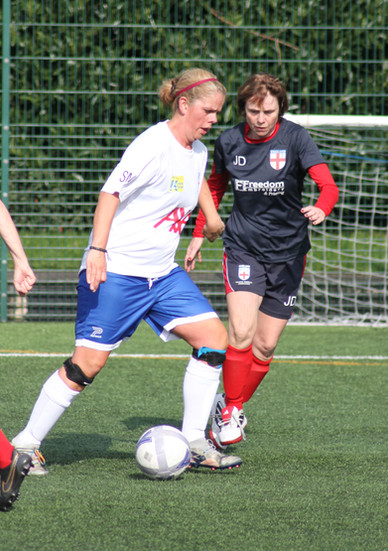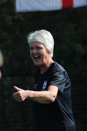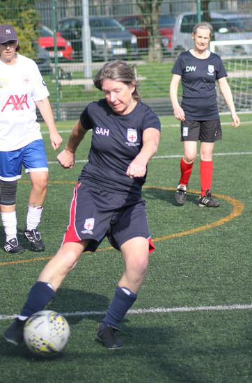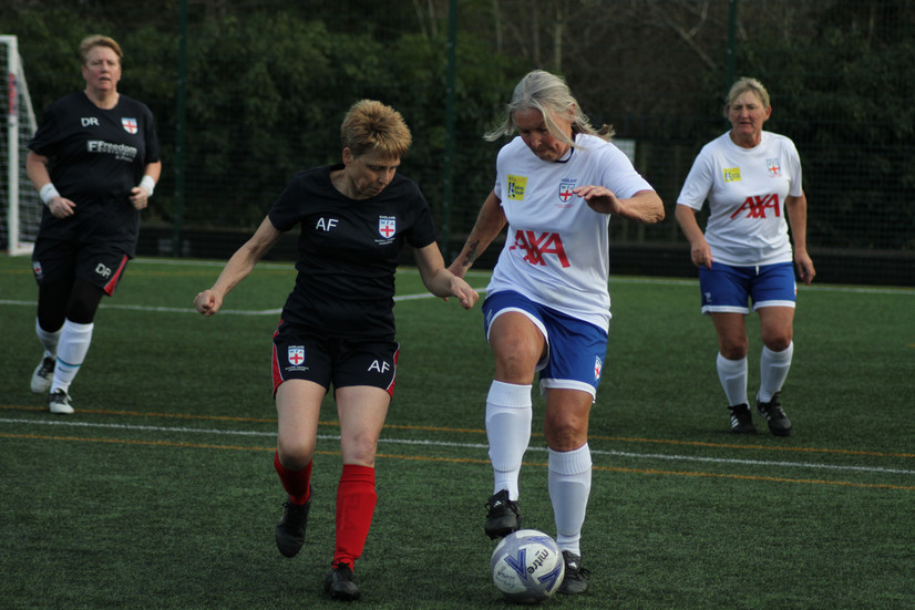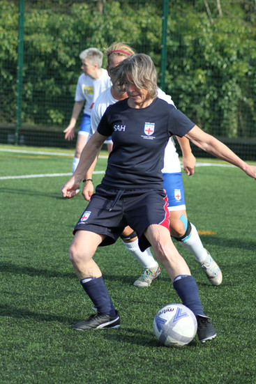 The teams then went on to take part in training drills together. This was led by members of the WFA England Over 60's coaching staff including Paul Wheatley, Heather Kirkland and Georjean Jones plus the Kicking Cancer's very own coach Lalla Banks.