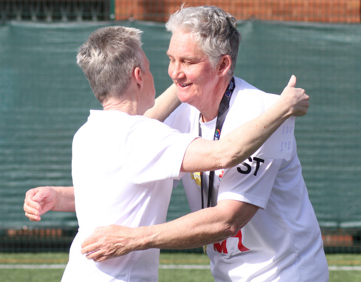 The WFA England Kicking Cancer team started the day by receiving their medals for the World Nations Cup, having competed in this Spanish based tournament during November last year. Julia Tibbs - the founder of the team - led the ceremony presenting the inspiring women with their medals. There were hugs, smiles and some emotional reflection on what the team means to every player.